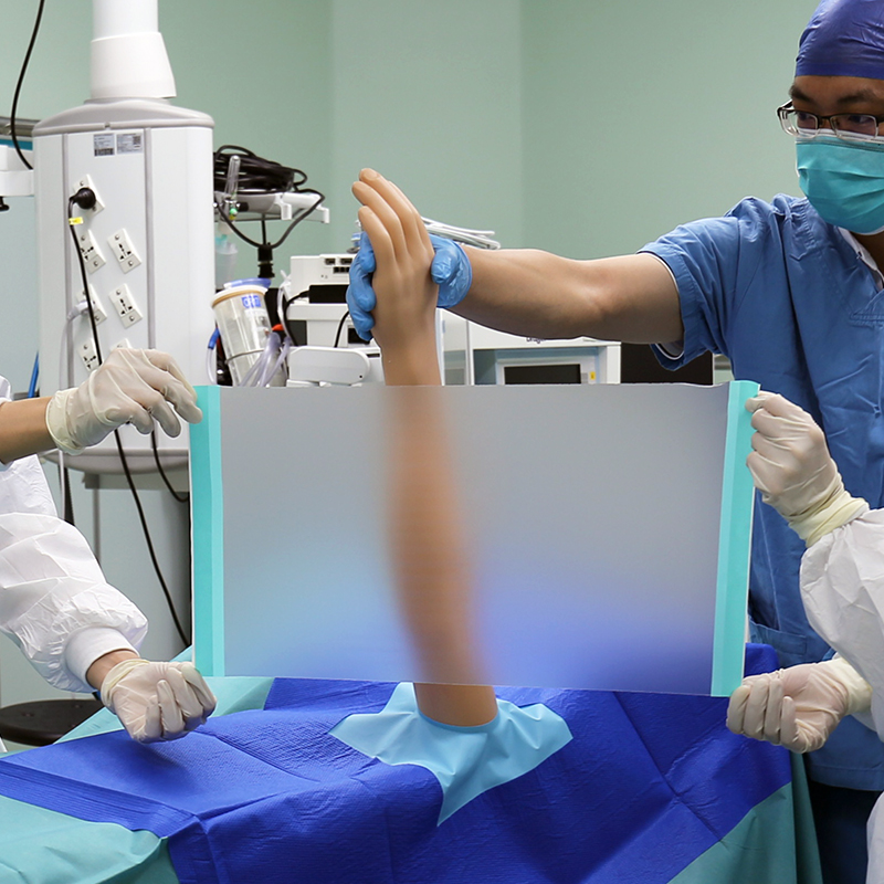 由高性能无纺布组成,配有吸液层,集液袋等液体阻隔装置, 强化手术关键区域阻隔能力,形成安全有效的无菌屏障。
