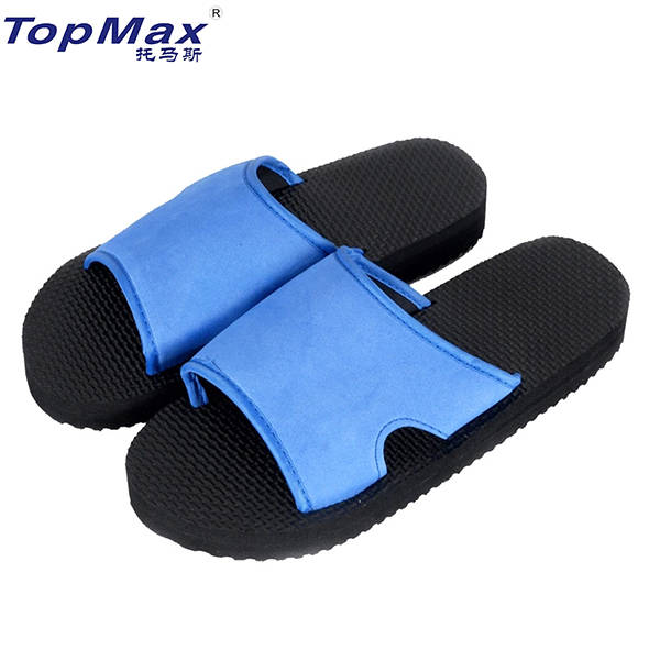 通过穿防静电鞋及防静电地面,使人体的静电荷从人体导向大地,从而起到消除人体静电的作用。防静电凉鞋的制作材质有很多种,包括复合EVA、泡沫底、PVC、PU等,下面以复合EVA拖鞋为例来介绍一下防静电凉鞋的性能与用途。防静电凉鞋必须配合防静电地板使用,通过拖鞋-地板-大地这个通道将人体的剩余电荷导向大地,避免电荷累积发生静电放电。